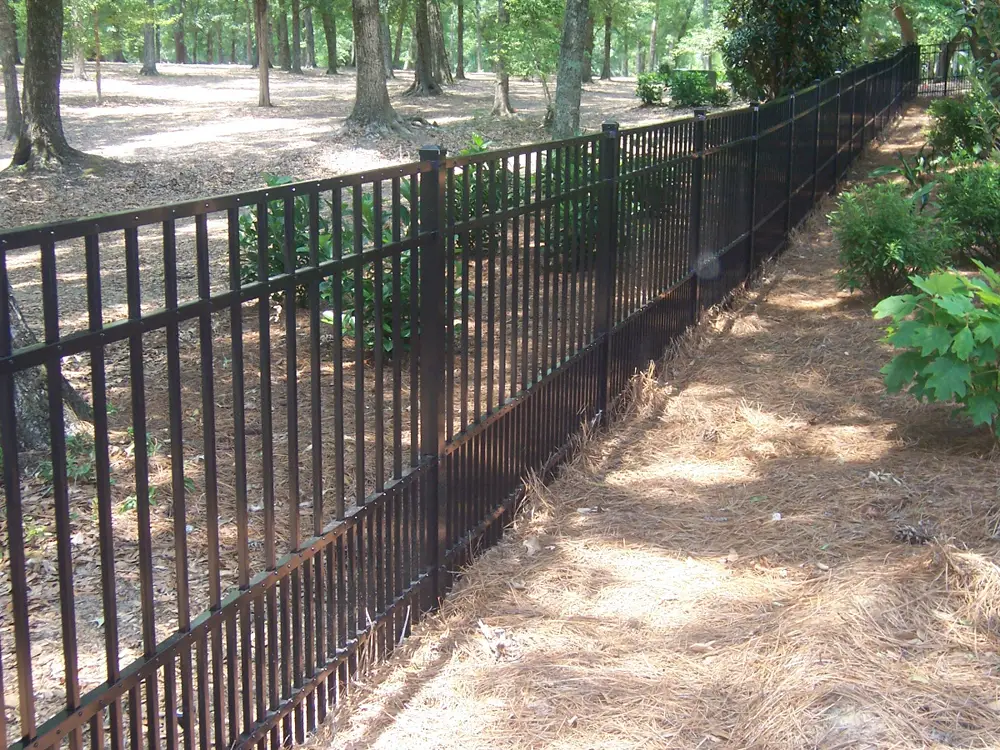 “Puppy fence” is an industry term. This is a style of aluminum fence that’s designed to keep most pets from being able to leave the yard. Our aluminum puppy fences feature pickets positioned closely to one another at the bottom of the fence with wider gaps across the middle and top sections. This prevents small animals such as dogs from escaping through openings other fences may have. All of our residential styles are available in 6′ widths with a variety of heights, but are also highly customizable. So, if you have something specific in mind, let us know and we can spec it out for you.