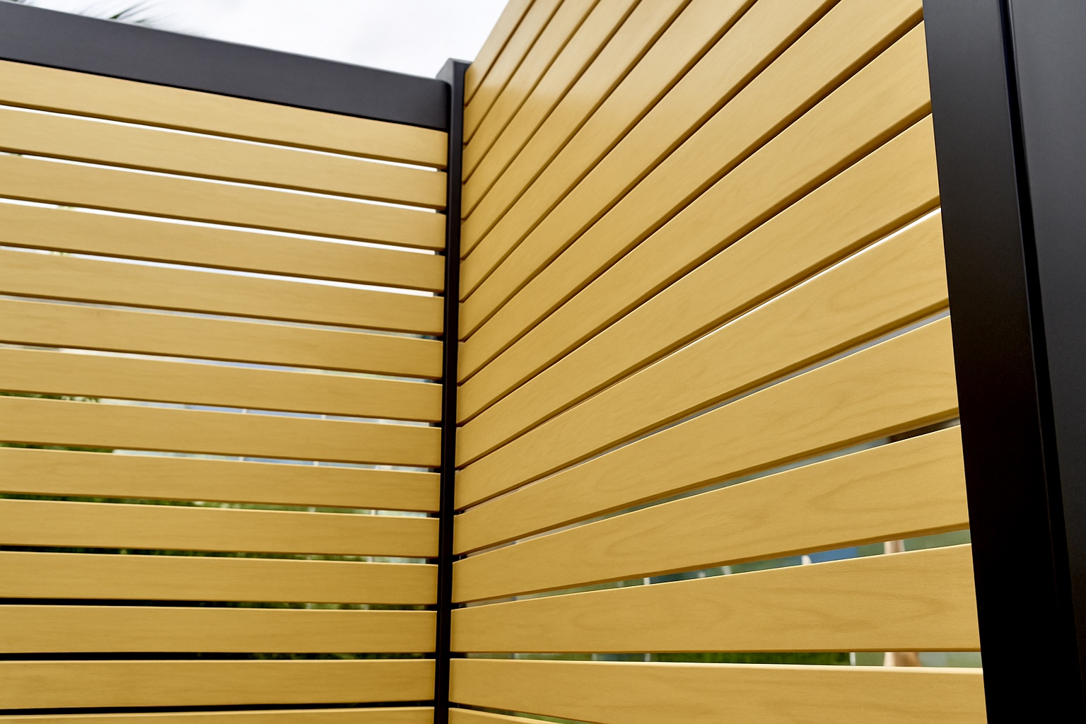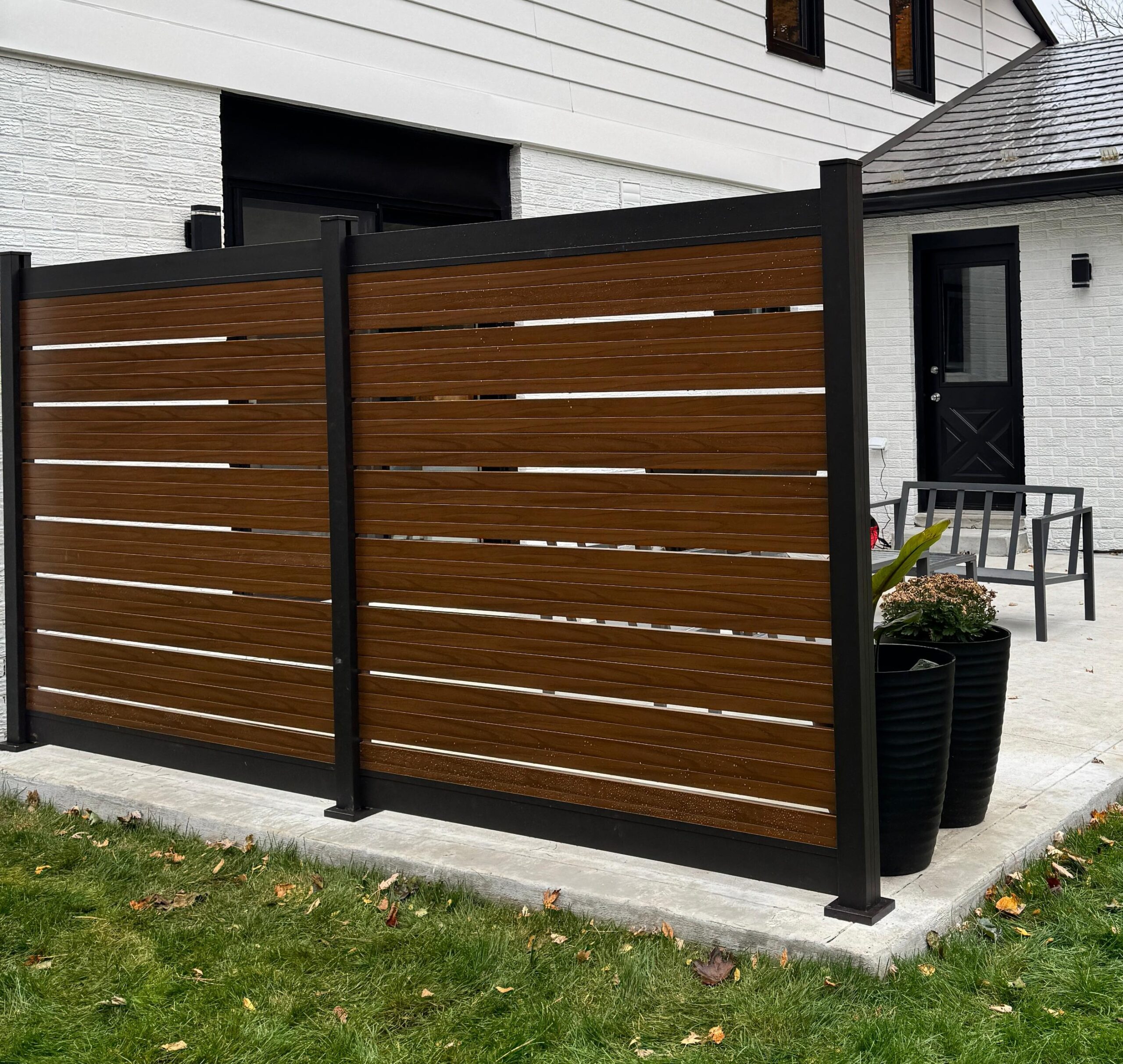 Now offering Color Woodgrain for our Aluminum Privacy Fence and Aluminum Semi-Private Fences as well. Still with horizontal slats that add privacy and a clean, contemporary look and style.