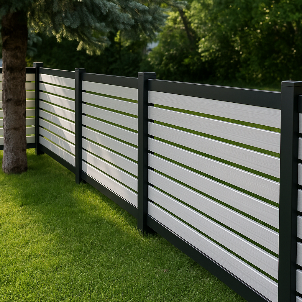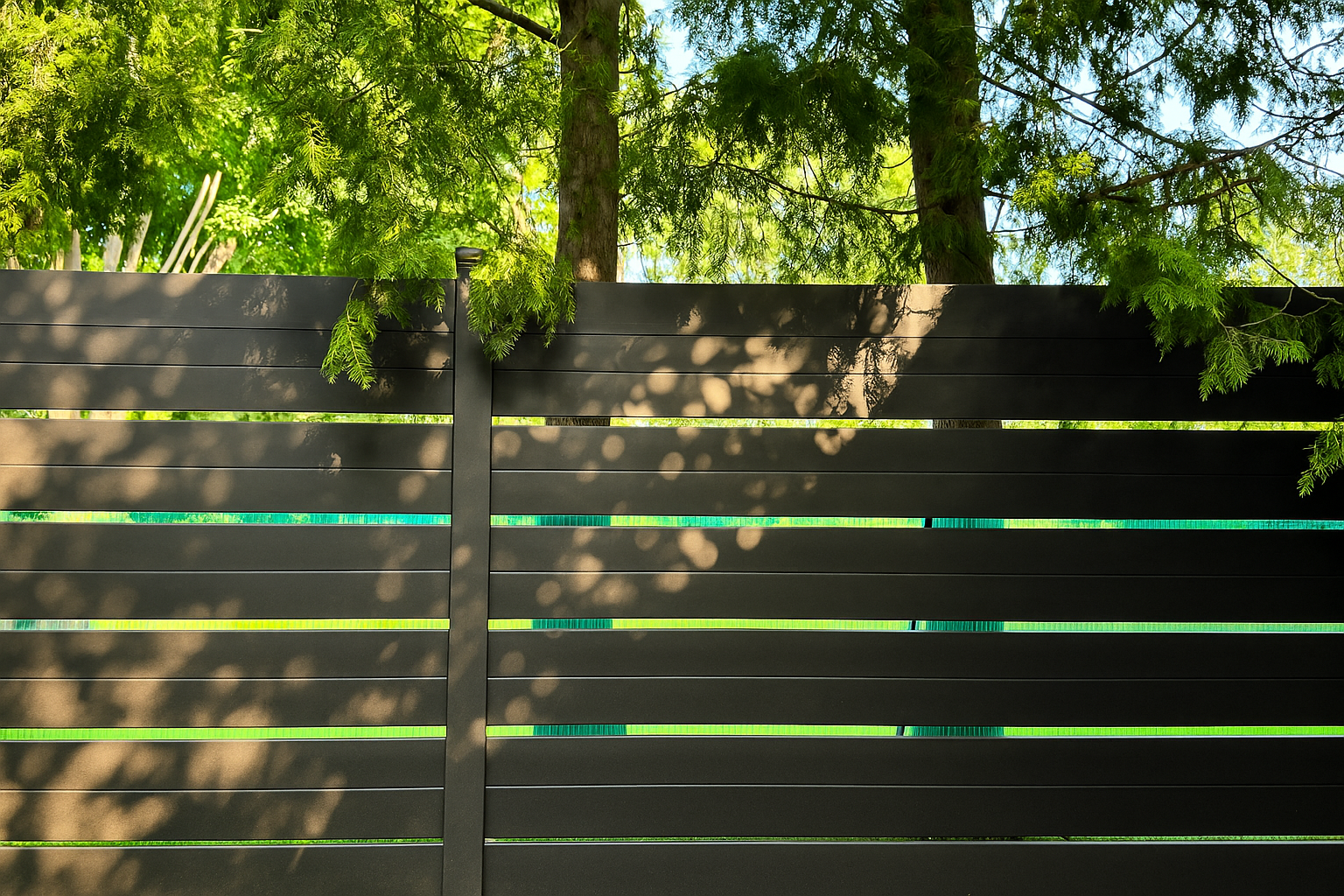 Aluminum Privacy Fence w/ Woodgrained Horizontal Slats is designed for builders and homeowners seeking a fence that combines privacy and security, but now with a splash of color and decor.