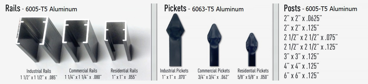 We offer commercial aluminum fences in 48″, 54″, 60″ and 72″ heights and in 6′ and 8′ widths. Both 6′ & 8′ widths have 3/4″ pickets with picket spacing of 3 11/16″. The 8′ wide panels allow you to dig 20% fewer holes and order 20% fewer posts.